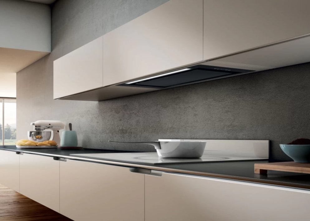 Een geïntegreerde dampkap in de hangkast is ideaal voor wie een discrete en efficiënte afzuigoplossing zoekt. Deze dampkap wordt volledig verwerkt in een bovenkast, waardoor hij nauwelijks zichtbaar is en perfect aansluit bij een strakke, minimalistische keukenstijl.