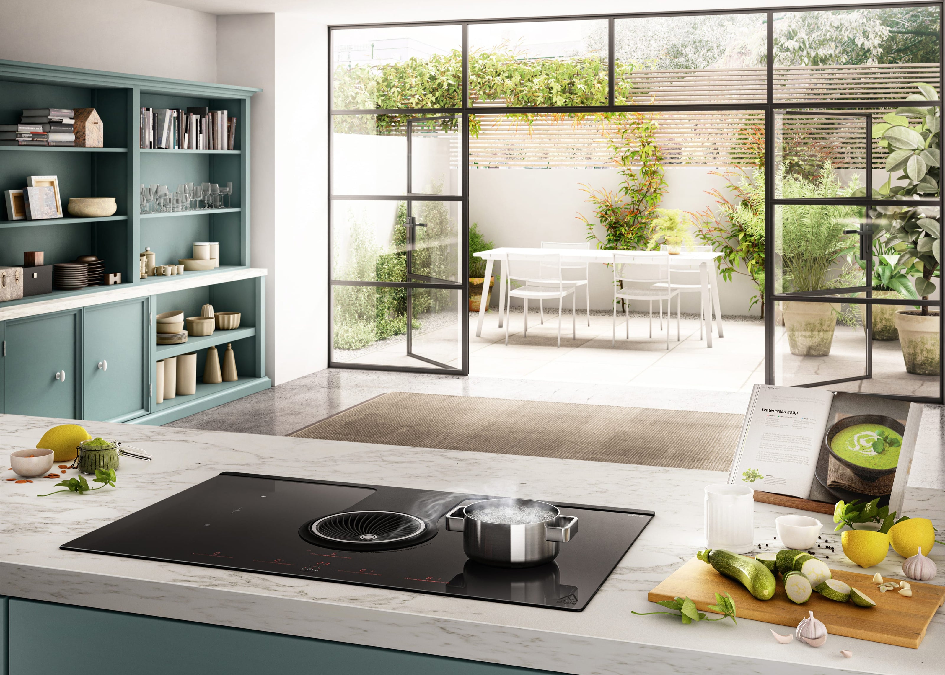 - Ruimtebesparend: Geen dampkap nodig, meer openheid in de keuken.