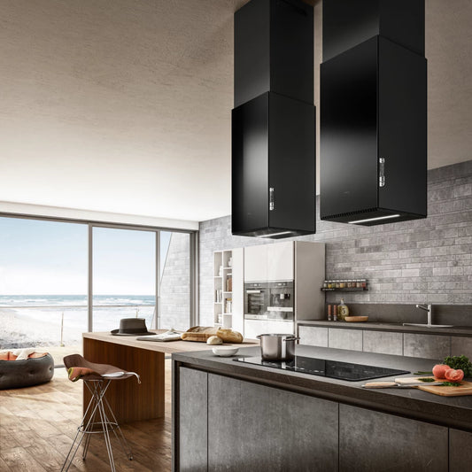 Compacte HAIKU ISLAND BL/A/32 Zwarte Dampkap – Stijlvol en Energiezuinig