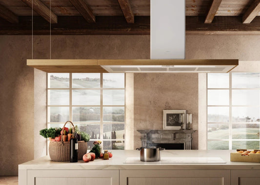 Elica BIO ISLAND WH/A/120x53 ROVERE – Design Eilandafzuigkap met Houten Details